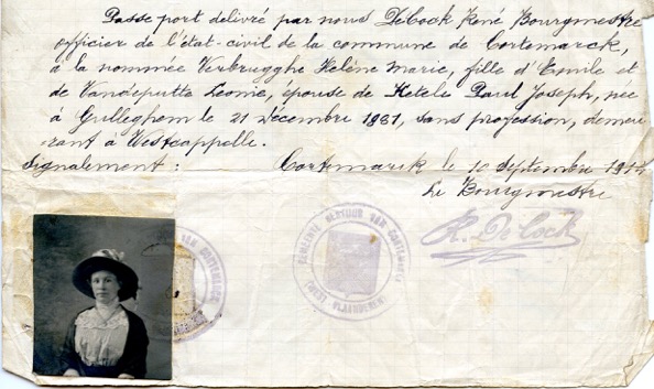 De zwangere Helena Verbrugghe (Gullegem, 1881) vluchtte in september 1914 met haar drie kinderen Paula (4 jaar), Godelieve (2 jaar) en Jozef (1 jaar) van Westkapelle via Kortemark naar Engeland. Daar werd zij opgevangen door haar schoonbroer en schoonzus, Jules en Margriet Ketele.