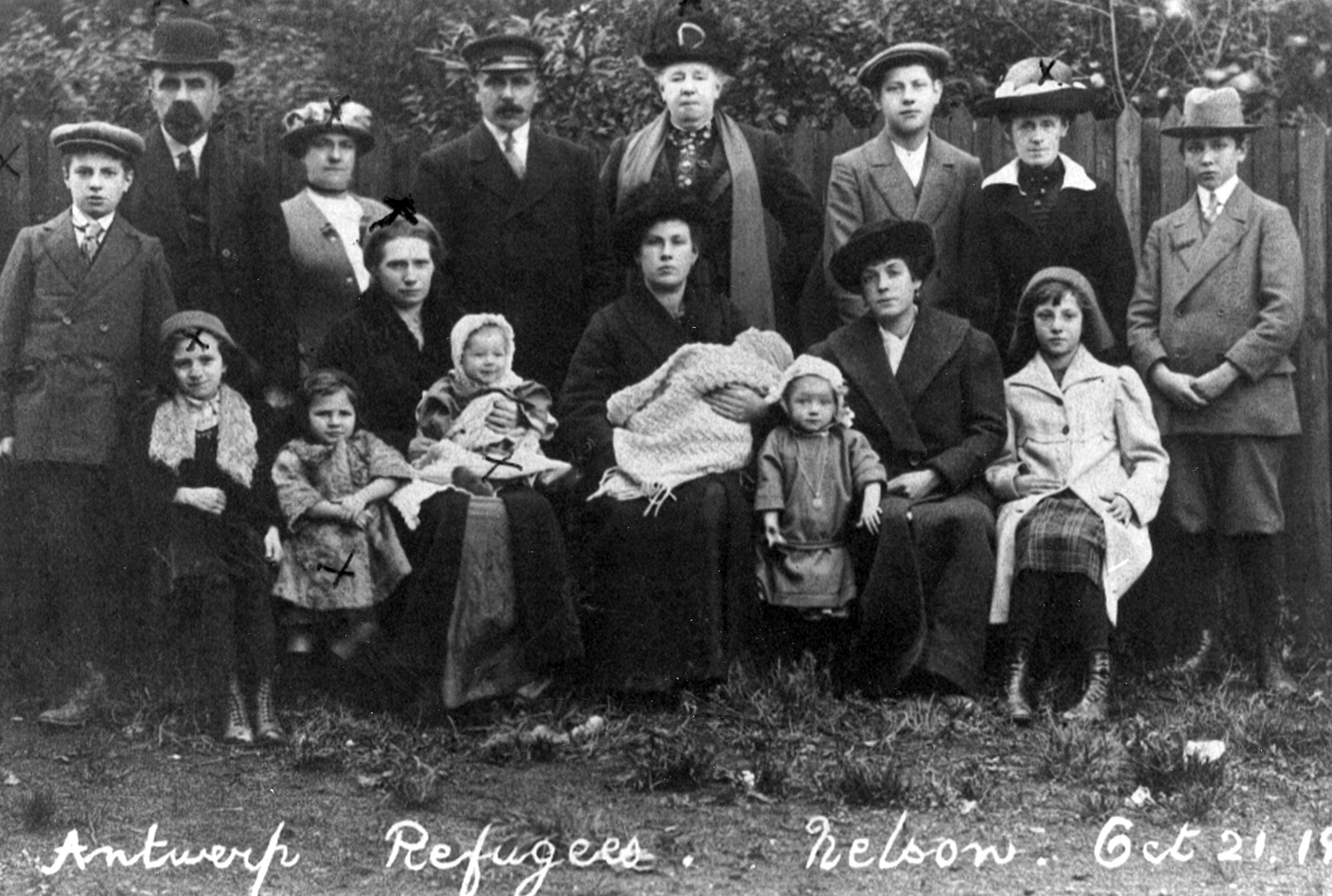 Twee Belgische gezinnen kregen een zeer warm onthaal in Nelson, door een menigte die op de hoogte was van hun komst. Onder hen ook een schoonzuster wiens echtgenoot zich in een ziekenhuis in Folkestone bevond.