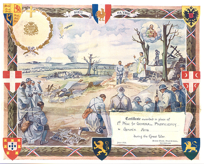 Hélène Govers (born in Ostend in 1876, died in Brugge in 1965) wrote her memories of the First World War in a school notebook under the title 'Souvenir de la Guerre Européenne 1914-1915-1916-1917-1918. Mes Mémoires'. This 109-page notebook is now in the possession of her granddaughter Rosane Vermeirsch.