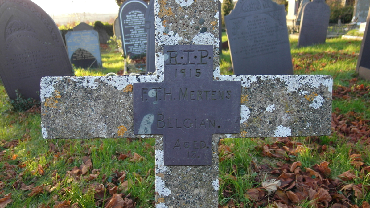 Bridget Geoghegan nudged at her research on graves of soldiers from the first world war in Wales on a tombstone for a thirteen year old Belgian.