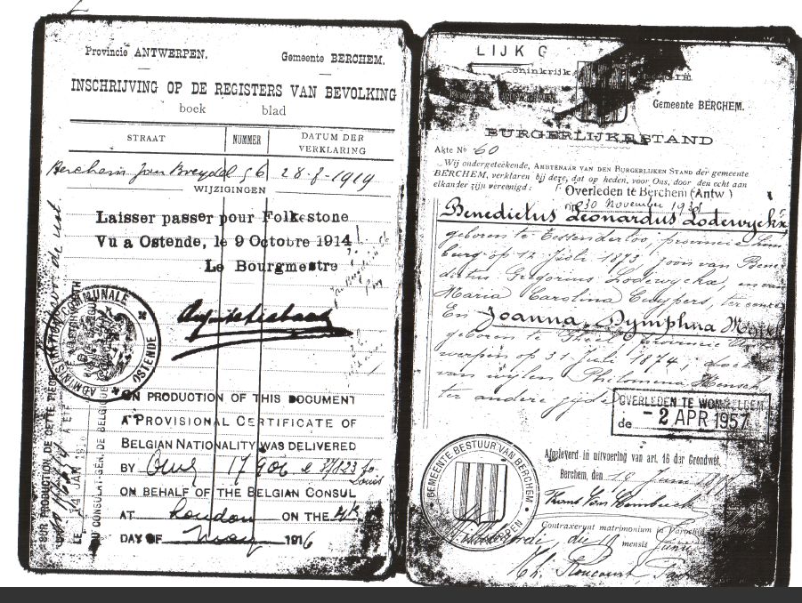 The family were not able to return to Belgium until 28 August 1919. According to their marriage certificate booklet, they went back to live at Jan Breydel Street, in Berchem (Antwerp). The children had a fairly good command of English; army documents said they were bilingual. Augustinus, Leonardus’ eldest son, became an ardent supporter of Derby County Football Club; and he would remain so for many years to come.