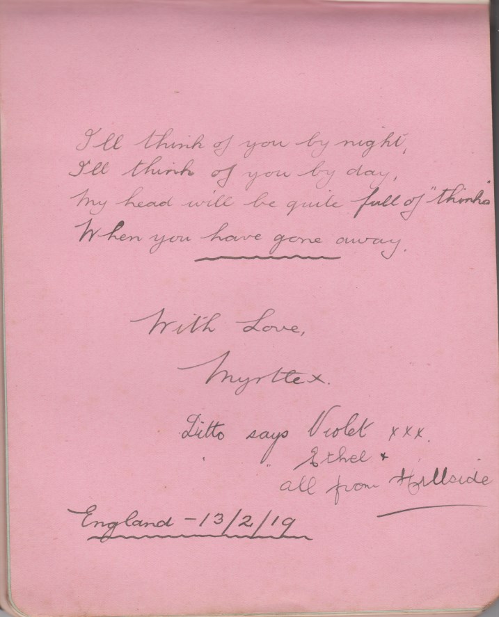 As crew members were allowed to take their family with them, the Schaap family boarded the Stad Antwerpen on 13 October 1914. Lots of civil servants and their families were also aboard this vessel. They set course for Le Havre, from where the Belgian government was operating until the end of the war. Eventually, the Schaap family made their way to England. The children went to an English school. Their command of the English language turned out to be a real asset after the war, when running the boarding house again. The family returned to Ostend in 1919. The children had made many friends in England. It was an emotional farewell. The poetry book testifies to that.