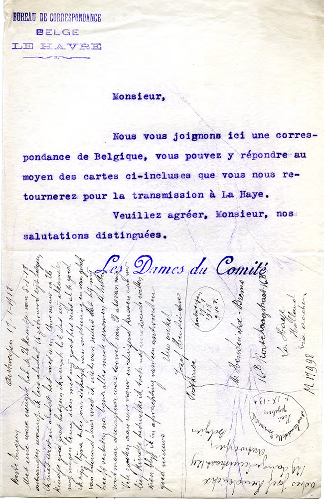 The family first got accommodation at the Victoria hostel, and was subsequently sent to Dullingham, Willesden Green and Watford. They stayed in the London region most of the time. A considerable amount of correspondence with Floris Prims, the future Keeper of the Archives at the City of Antwerp, has been preserved. Also, money transfers probably took place via the secretariat of De Stem uit België, which was run by Prims.